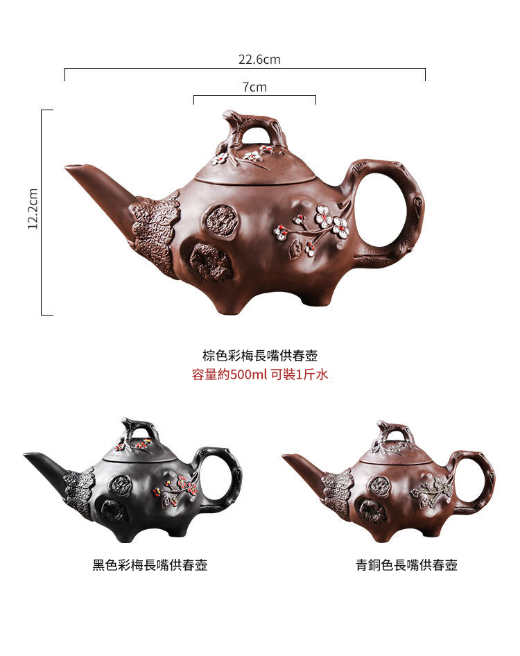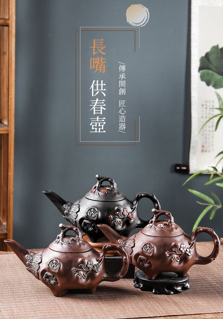 5分鐘前✩ 絕版收藏!正宗宜興紫砂朱泥長嘴供春壺 ❘ 黃金大容量500cc ❘ 純手工浮雕匠製,泡茶更香 - 紫砂朱泥長嘴供春壺500cc