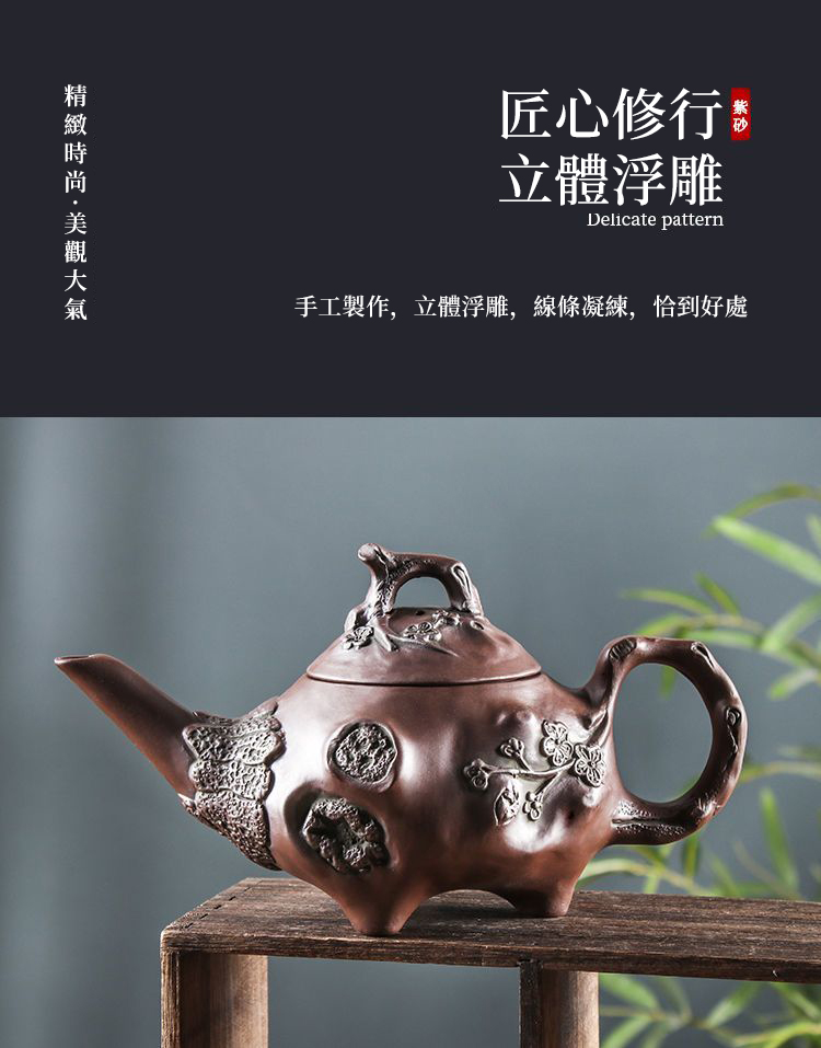 2分鐘前✩ 絕版收藏!正宗宜興紫砂朱泥長嘴供春壺 ❘ 黃金大容量500cc ❘ 純手工浮雕匠製,泡茶更香 - 紫砂朱泥長嘴供春壺500cc