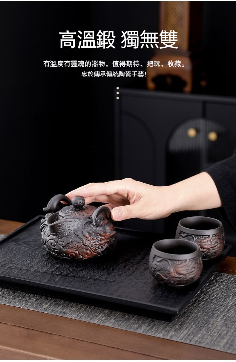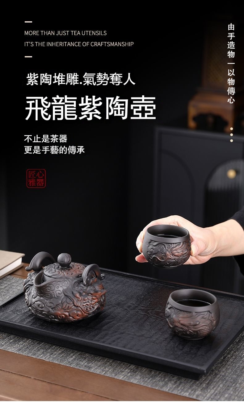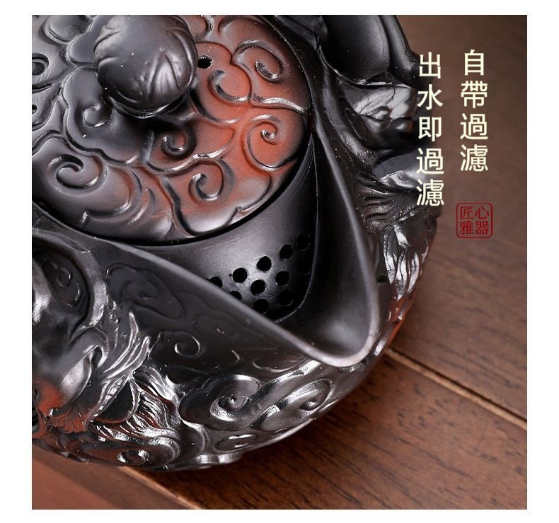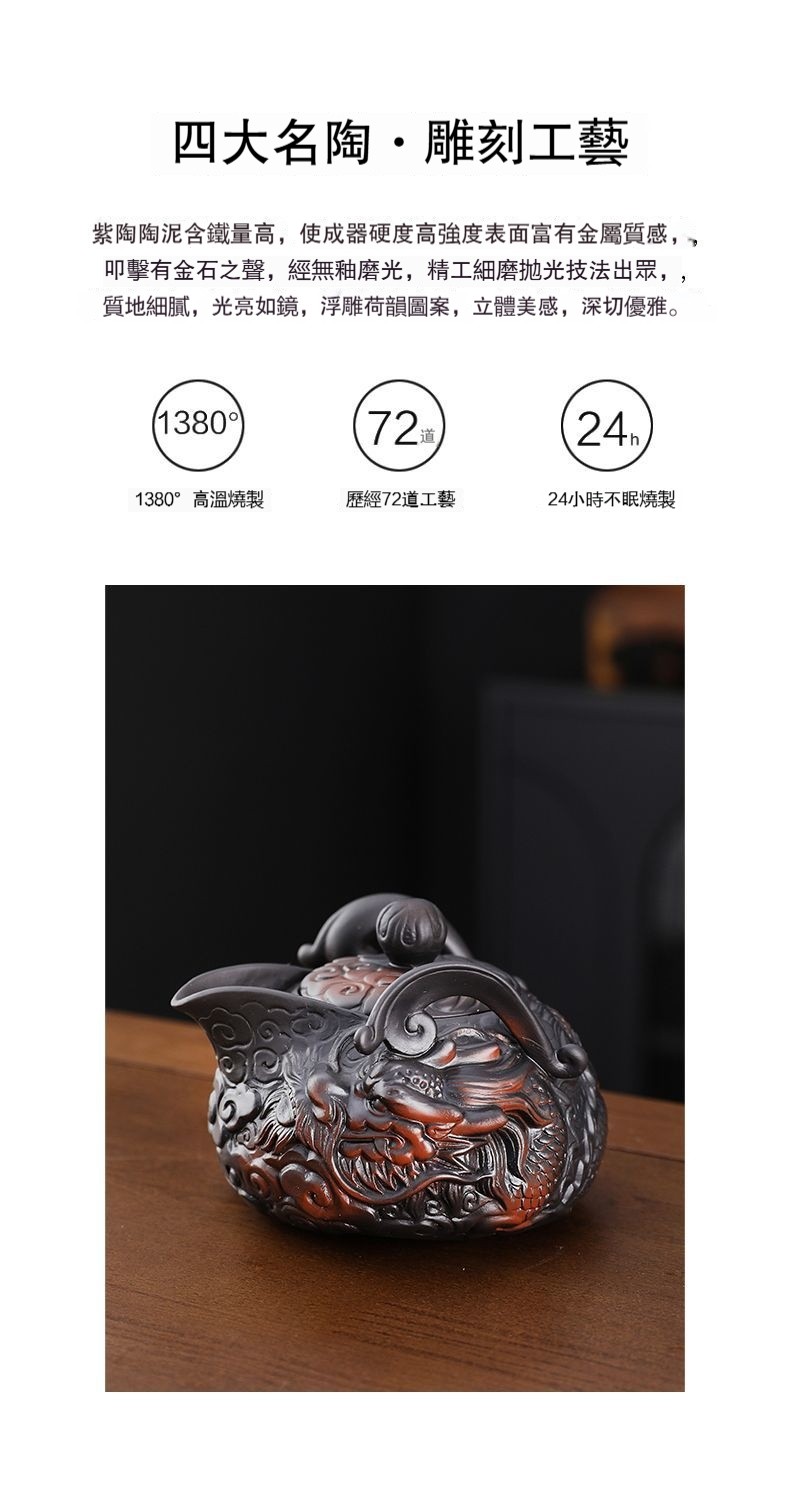 經典傳承・匠心打造|【大師純手工紫陶鳳鳴壺】復古跳刀紋漢瓦壺(一壺兩杯)・黃金大容量300cc + 球孔過濾,鳴音設計顯格調