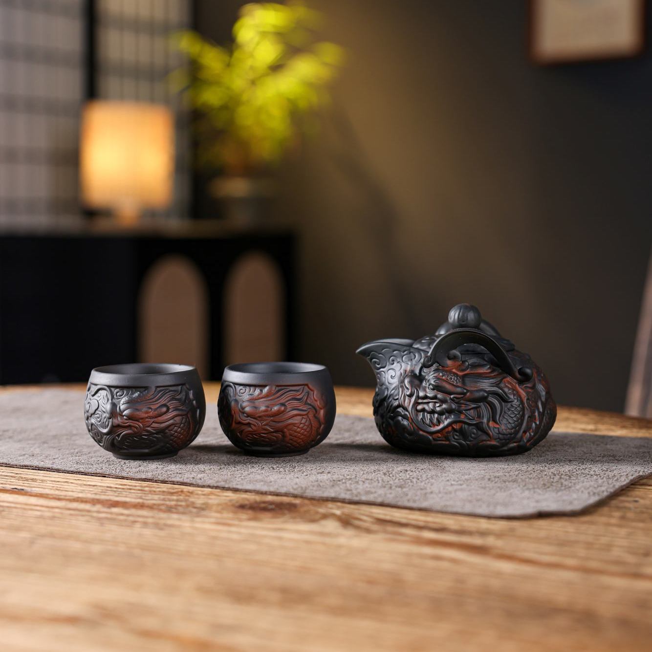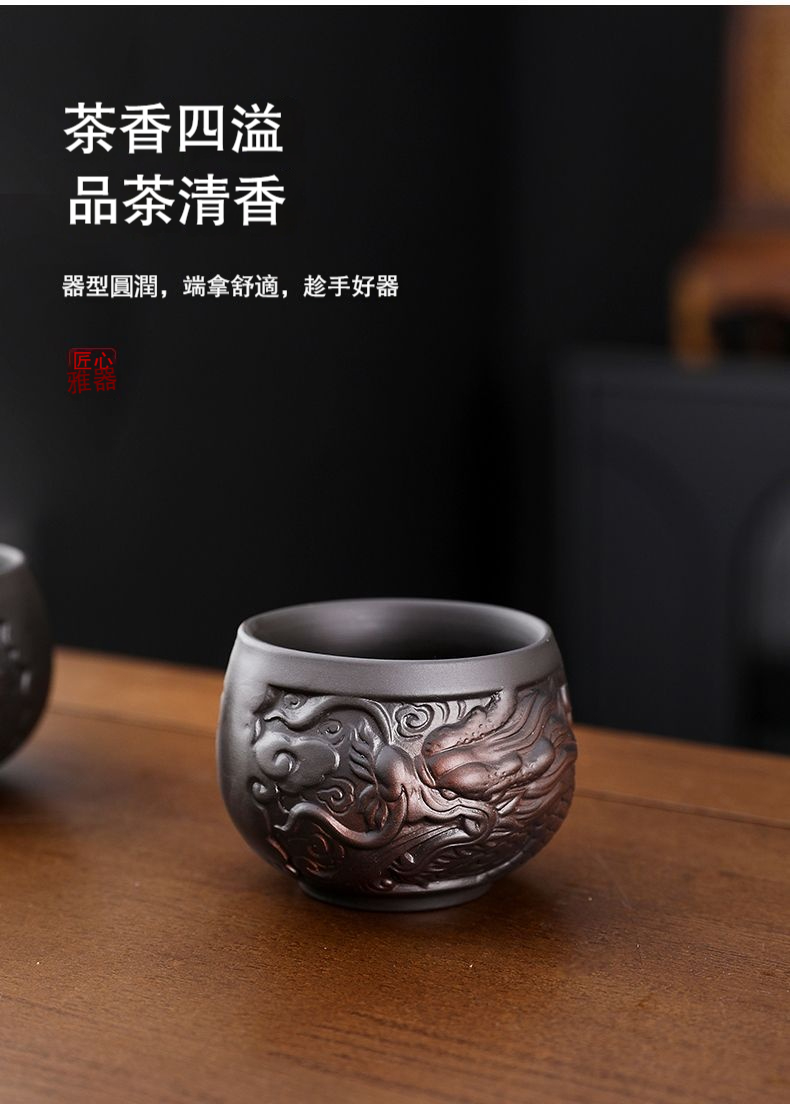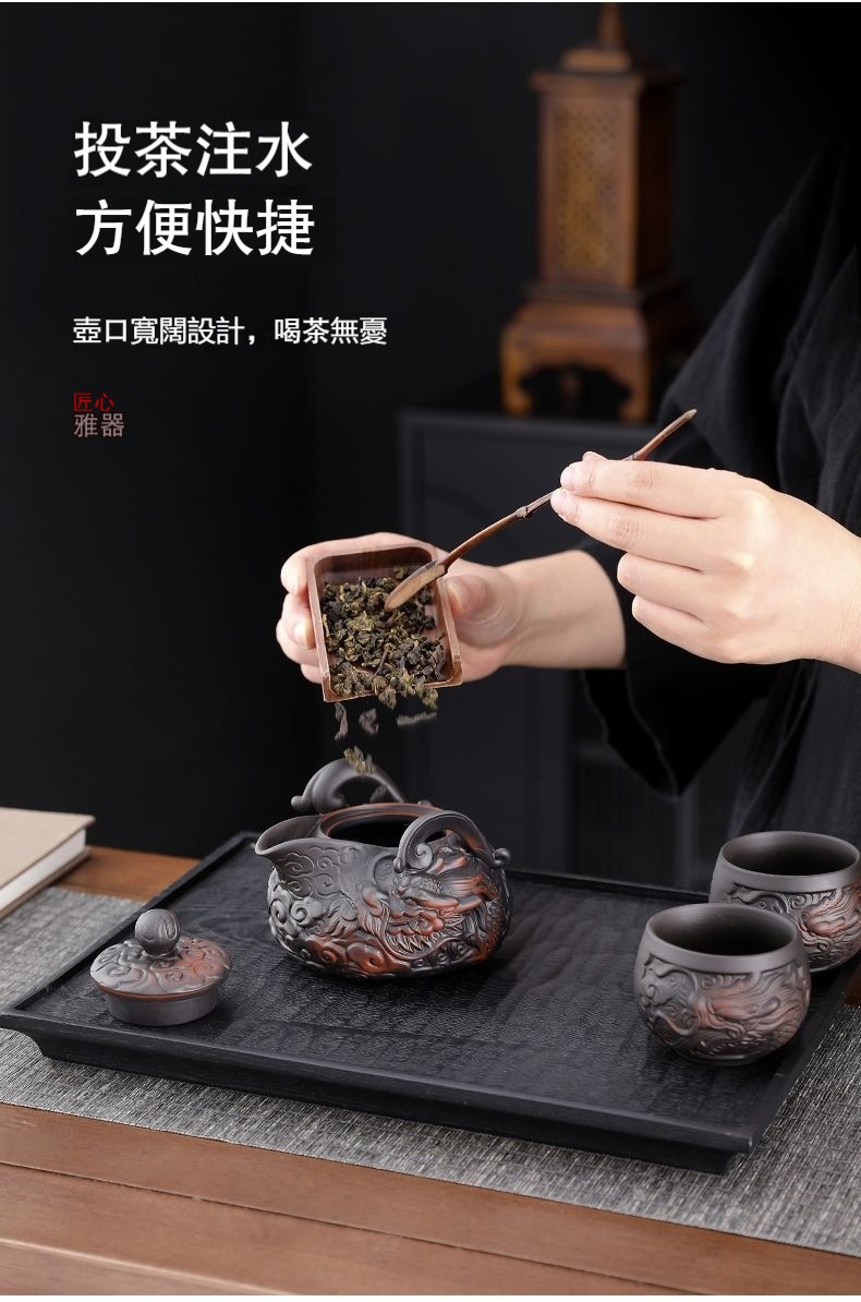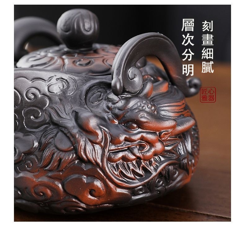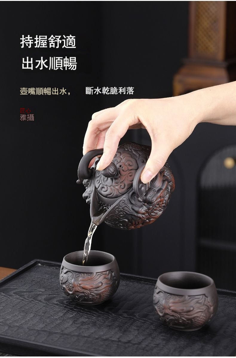 經典傳承・匠心打造|【大師純手工紫陶鳳鳴壺】復古跳刀紋漢瓦壺(一壺兩杯)・黃金大容量300cc + 球孔過濾,鳴音設計顯格調