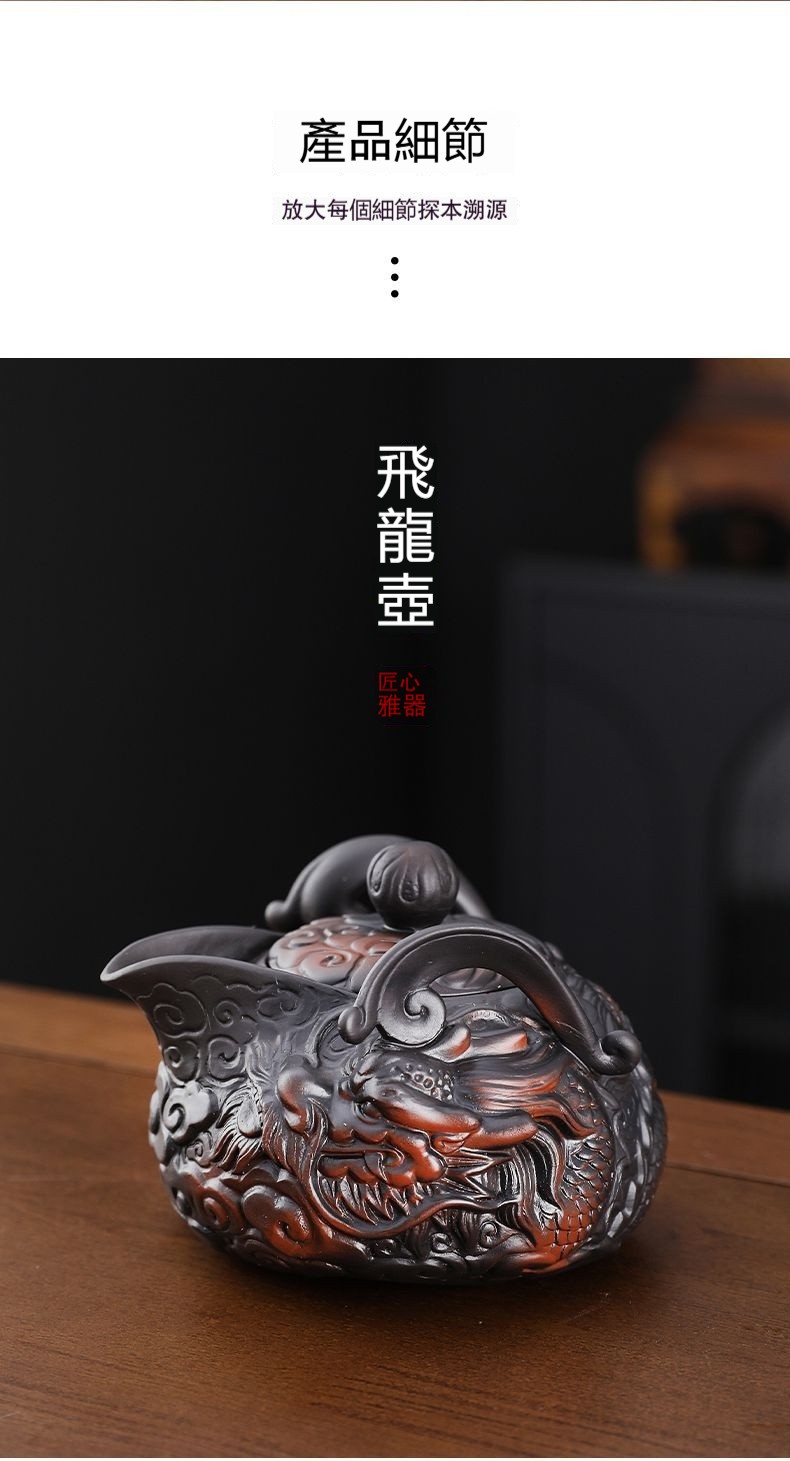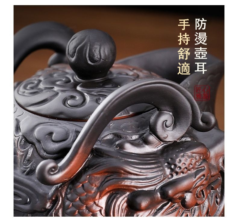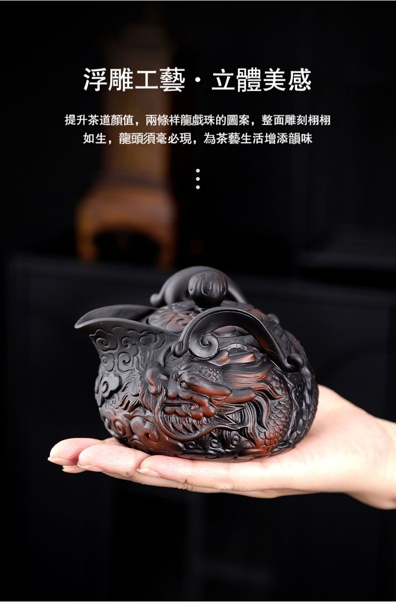 ✩ 絕版收藏!正宗宜興紫砂朱泥長嘴供春壺 ❘ 黃金大容量500cc ❘ 純手工浮雕匠製,泡茶更香